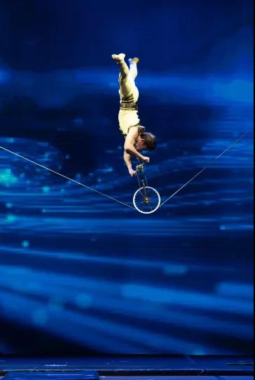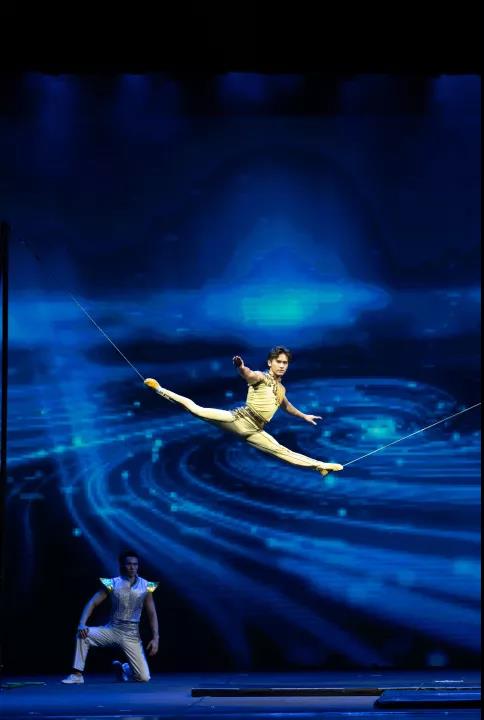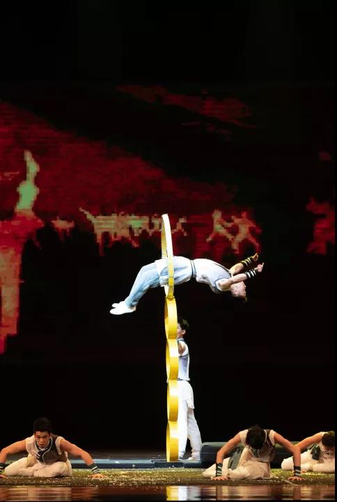 《傳承—地圈》的表演,他們一個(gè)個(gè)輕如飛燕,騰身飛躍鉆圈的高難度技巧,驚險(xiǎn)、壯觀,令人叫絕。