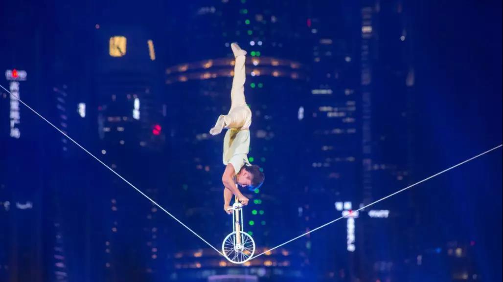 而現(xiàn)代雜技,不再只是街頭賣藝,它所想要展現(xiàn)給人們的是:人,不應(yīng)該只局限于眼前,敢于挑戰(zhàn)自我,才能達到更高的高度。