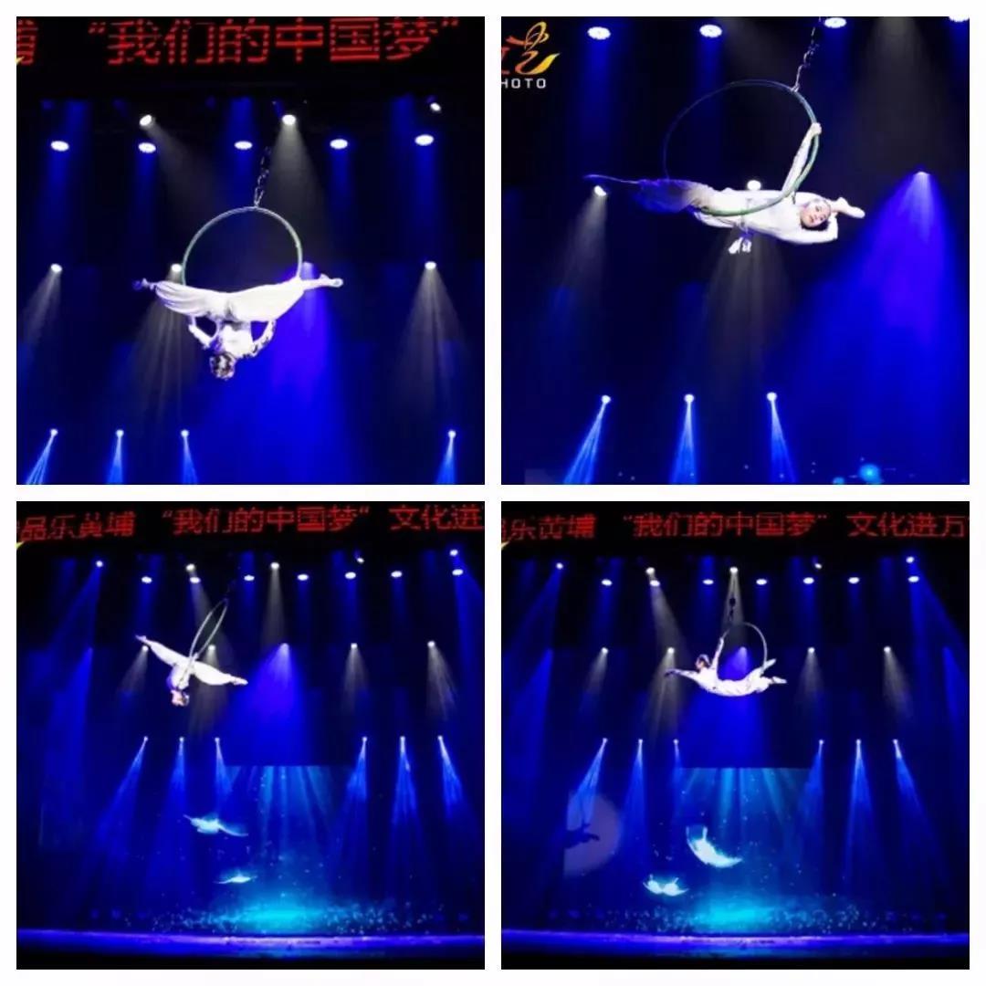 《天使之翼——吊圈》演員懸掛在空中,置身圈里,用極其柔軟的肢體完成“快速轉(zhuǎn)上”“單腳拉單壓”等技巧,比起在地面上完成的柔術(shù)動作,另有一種旋轉(zhuǎn)變化的動態(tài)美。