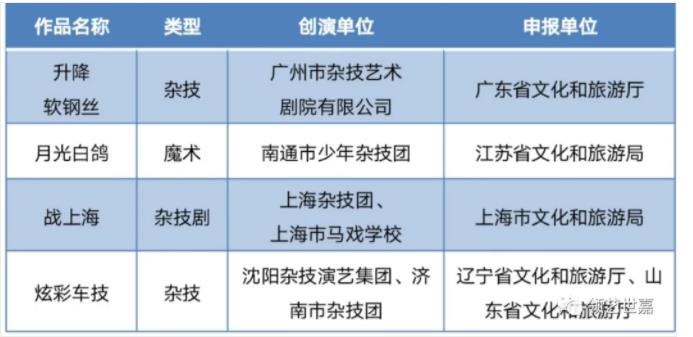 “中國(guó)雜技藝術(shù)創(chuàng)新工程”重點(diǎn)扶持作品名單