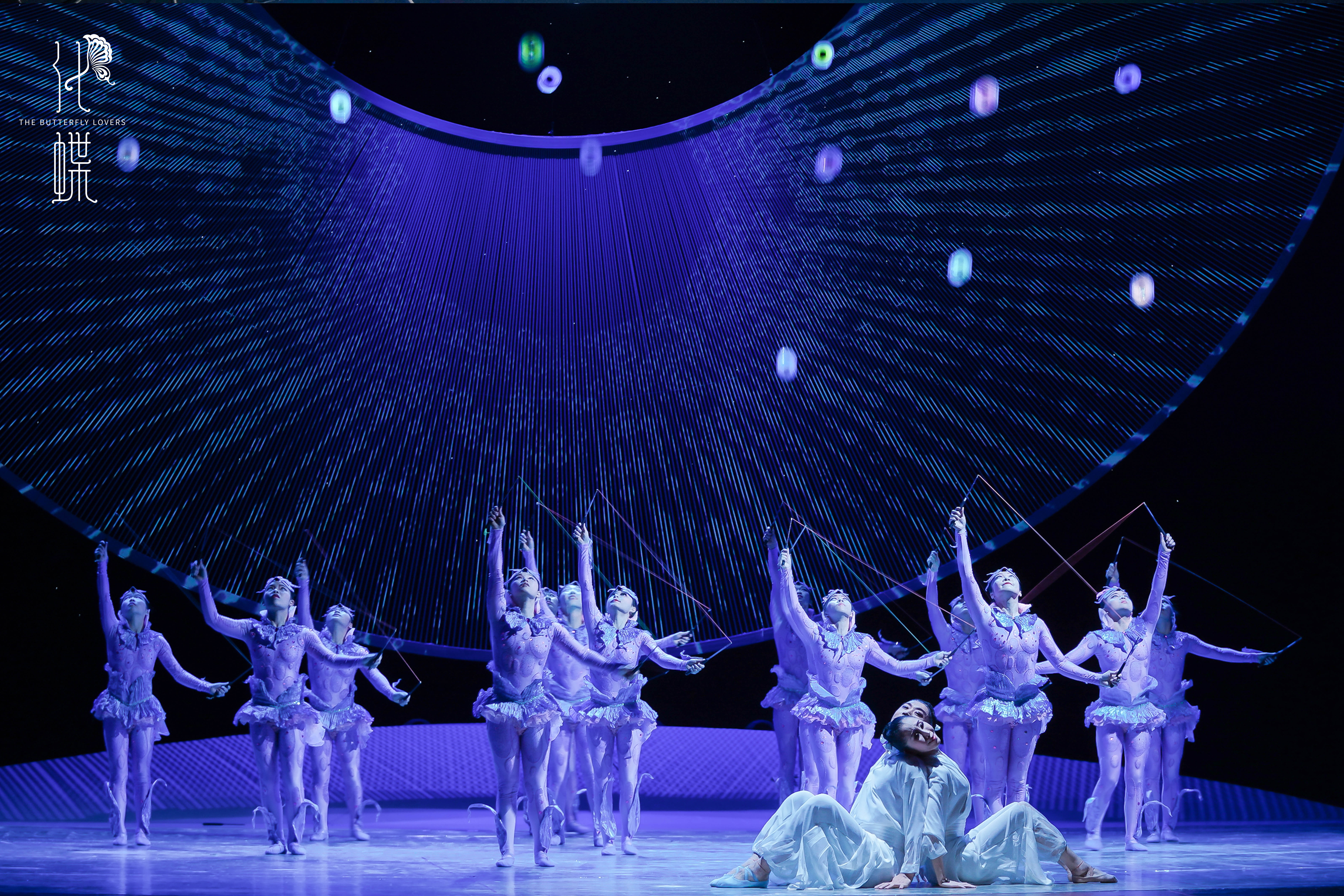 該劇情節(jié)飽滿,內(nèi)涵豐富,第一幕中梁祝初識的場景,編排了大量群體節(jié)目。演員們化作栩栩如生的彩蝶,伴隨靈動輕快的音樂,與大氣典雅的舞美配合,通過空竹、軟功、蹬人、蹬傘、球技等數(shù)十種雜技節(jié)目的創(chuàng)新表演,展現(xiàn)閨閣中、書院里的少女柔情、少年爽朗。