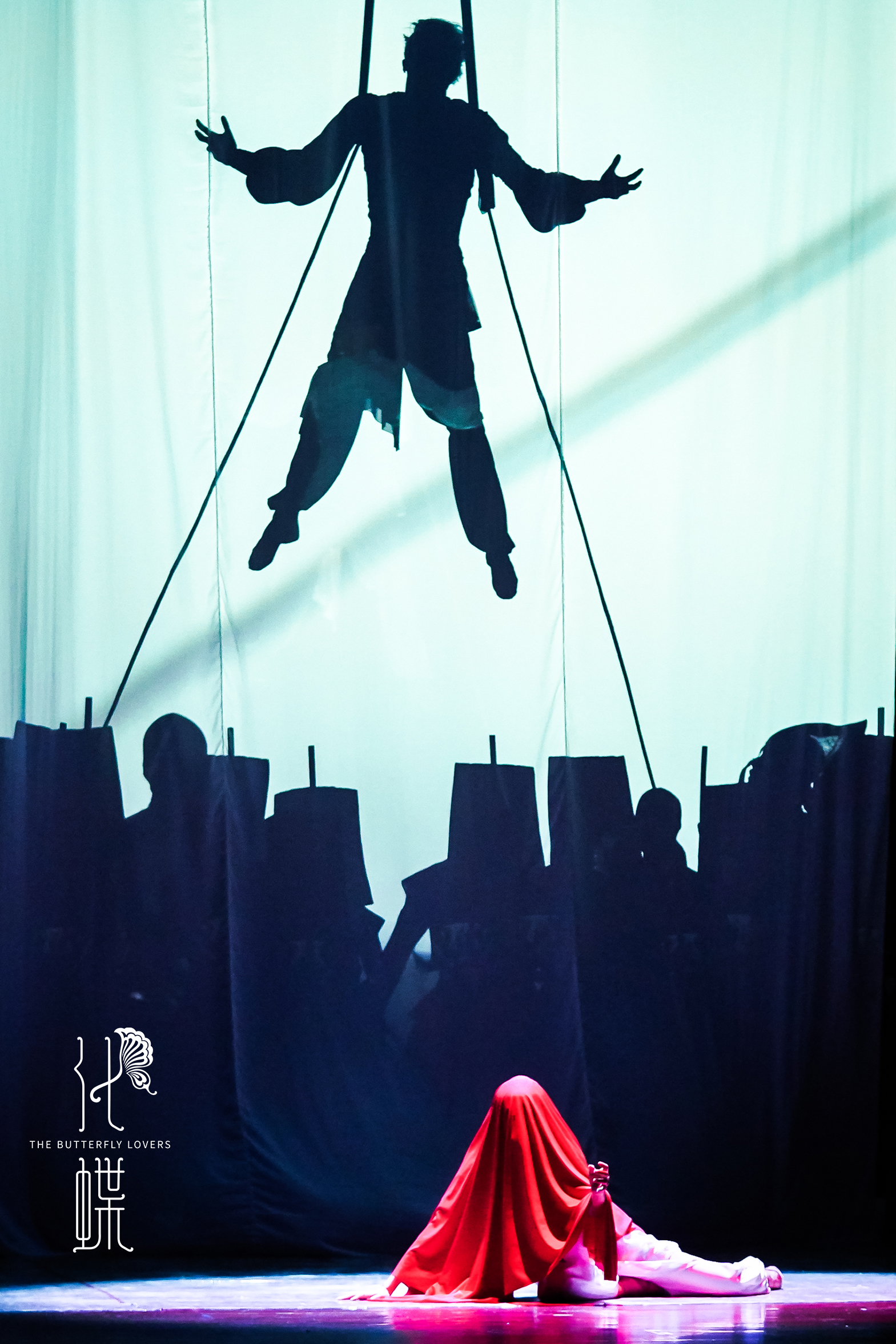 而為了將梁山伯與祝英臺抗?fàn)幏饨ǘY教的束縛和鞭撻,生死相隨、忠貞不渝的愛情體現(xiàn)得淋漓盡致,第二幕中又以綢吊、抖杠、軟鋼絲、六人技巧、肩上芭蕾等雜技節(jié)目作為重點,結(jié)合傳統(tǒng)技藝和現(xiàn)代審美加以創(chuàng)新。