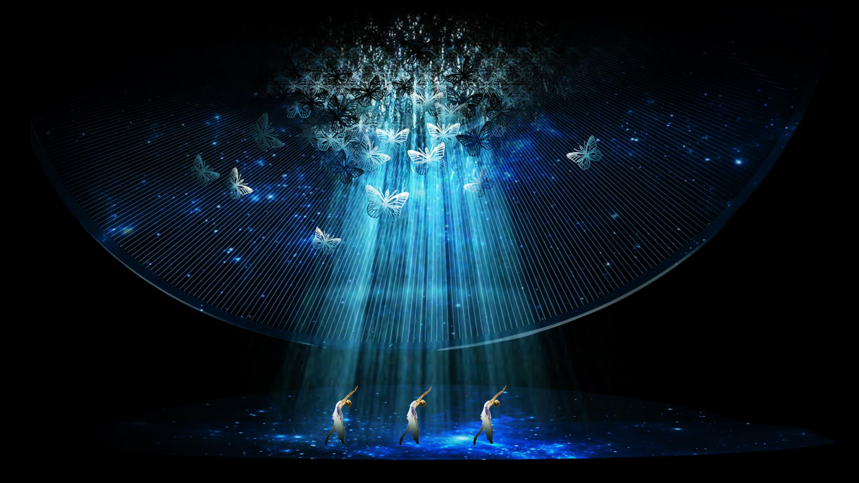 最初交流想法時(shí),秦立運(yùn)和趙明都非常明確,首先要回避滿臺(tái)皆是蝴蝶元素的視覺印象,否則觀眾看演出時(shí)的第一反應(yīng)定是蝴蝶特別多,反而沒(méi)有起到襯托表演的作用。