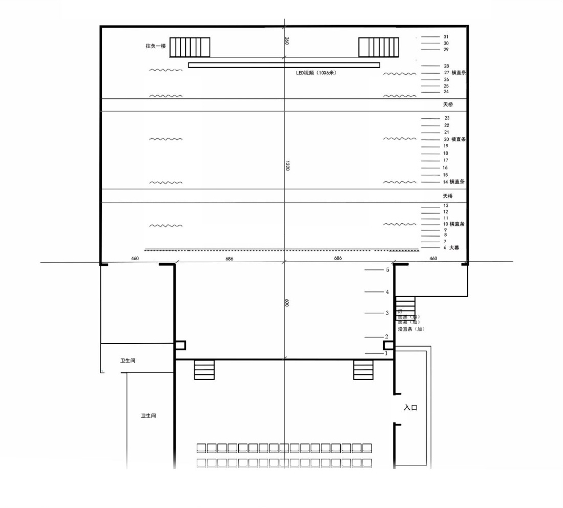 廣州雜技院第一劇場(chǎng)吊桿,舞臺(tái)平面