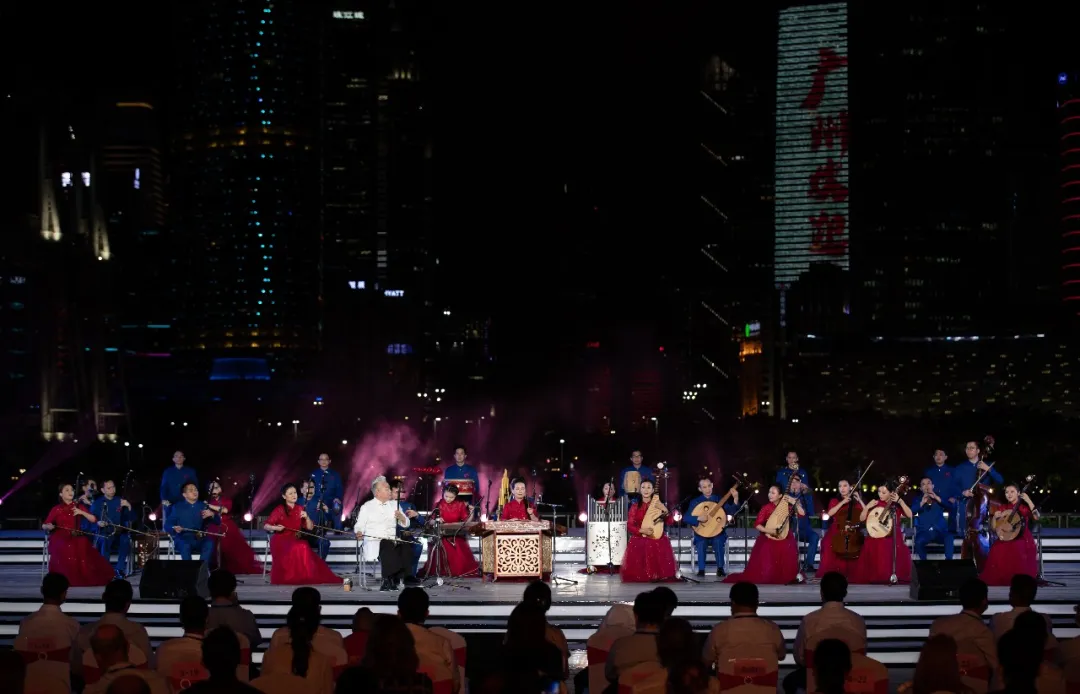 Famous Folk Music Performer Fang Jinlong and Guangdong Music and Folk Art Troupe Played Guangdong Music "Moon over the Peaceful Lake in Autumn" and "Extolling Good Times with Singing and Dancing"