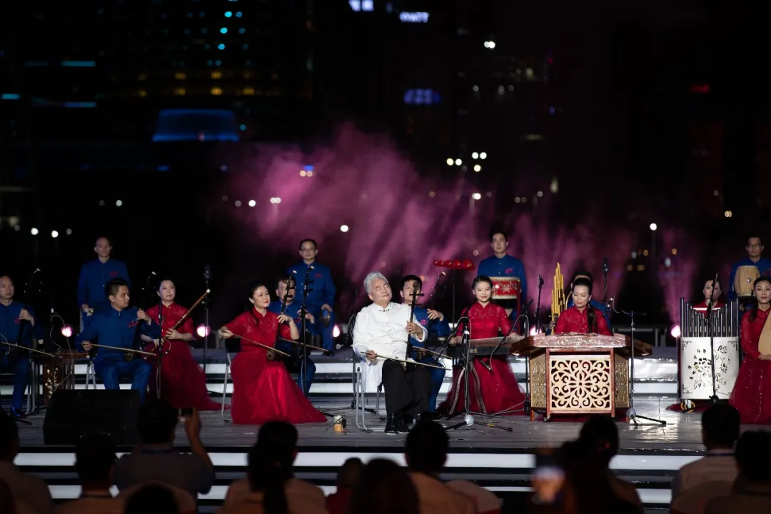 Eastern and Western music meets and blends here. This is a piece of Guangdong music performed by the famous pianist Wu Muye and the famous pipa player Fang Jinlong. The program symbolizes the encounter between Guangzhou and "Fortune", and the fusion of China and the world.